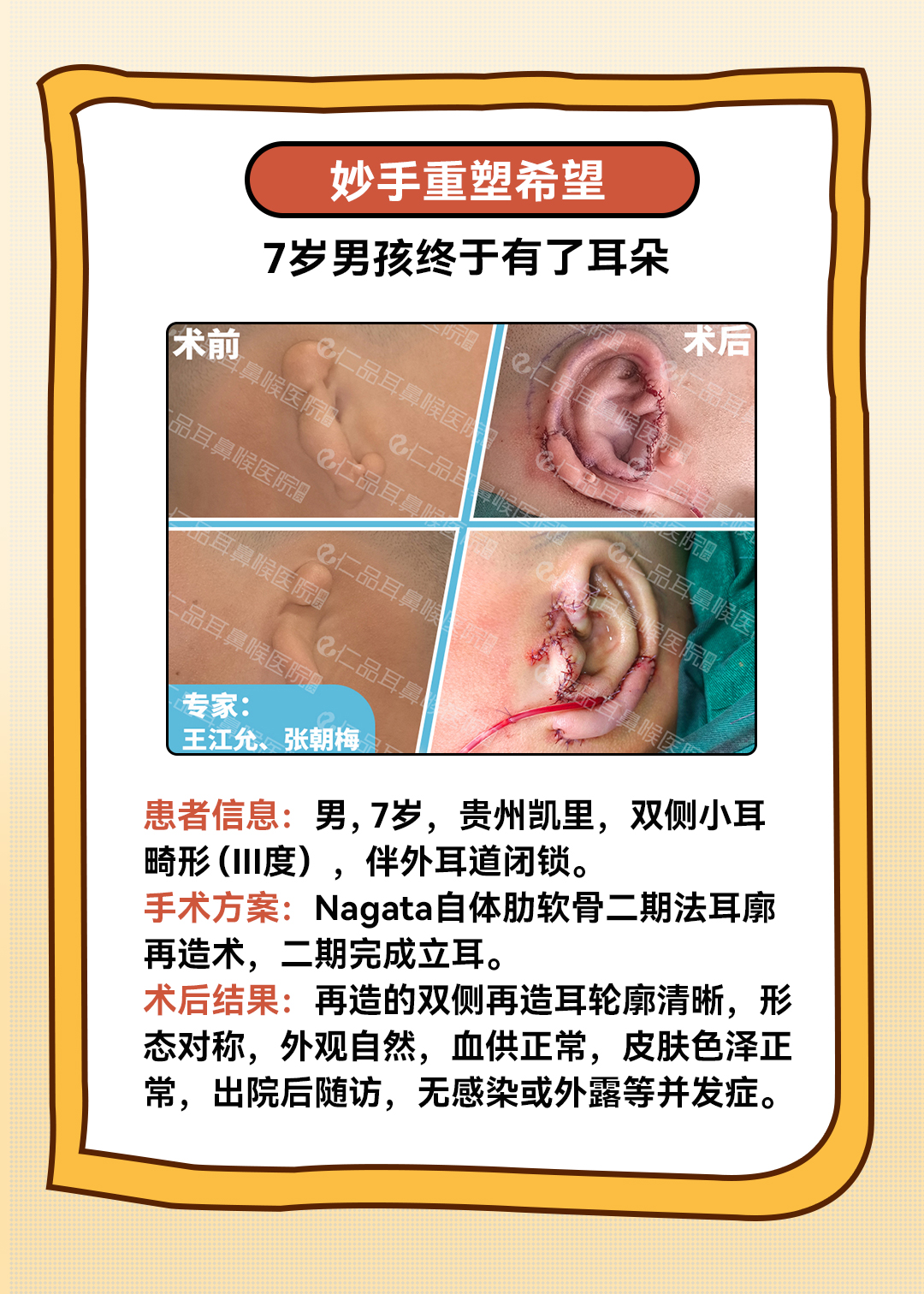 为了减轻患者家庭压力,医院还筹资成立耳鼻喉健康基金,单侧小耳畸形最高援助20000元。